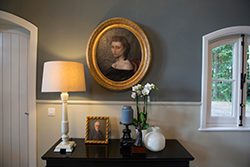 Right at the top of the staircase Marie, who was painted by her sister Antonine in 1875, awaits you. In her room is a king size bed on a solid oak floor. The adjacent bedroom has a bath with a rain shower, a sink, a toilet and a ‘goose-step’ staircase. Up here the serious-looking eight-year-old Leo watches over the entrance to his room. He was the apple of his sister-in-law Antonine’s eye and sat to her in 1875 for a large full-length portrait. Behind a swing door you will find two single beds. When you look through the window, you feel like you are among the tops of the trees.