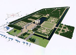 By the 19th century, the monumental renovations were over. The interiors were occasionally adapted to the latest fashions, but no fundamental changes were made. Joseph, the sixth Duke, did ask the famous German landscape architect Eduard Keilig to make plans for the estate.The basic structure of monumental sightlines was retained, but the classical layout made way for a landscape design with sloping lawns, picturesque groups of trees, wooded areas and a rose garden. A new garden pavilion in the Flemish Neo-Renaissance style was built in the woods and this would be used as a painting studio or atelier by Antonine, the sixth Duchess, a gifted amateur artist.
