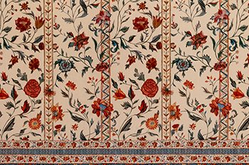 The first chintzes were imported from India in the 16th century. Their designs of exotic plants and flowers appealed to the imagination, the fabric was finer than wool or linen and they retained their bright colours even after washing. From the 17th century onwards, with the large trading companies ensuring a permanent supply, the popularity of chintz grew and grew. Besides expensive, multi-coloured and hand-painted fabrics for the rich, the trading companies also imported printed fabrics with fewer colours aimed at the lower classes. Chintz was used for clothing, but also for bedspreads, tablecloths, furnishing fabrics, curtains and wall hangings. From the 18th century onwards, in order to meet the growing demand, cotton printing factories also began to emerge in Europe.