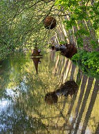 De neststructuren zijn als druppels of tranen die uit de bomen vallen en een ritmische beweging maken op het water. De weerspiegeling van de bomen in het water roept een zekere melancholie op. De nesten hebben alle drie zachte ronde vormen, die je ook terugvindt in de natuur.